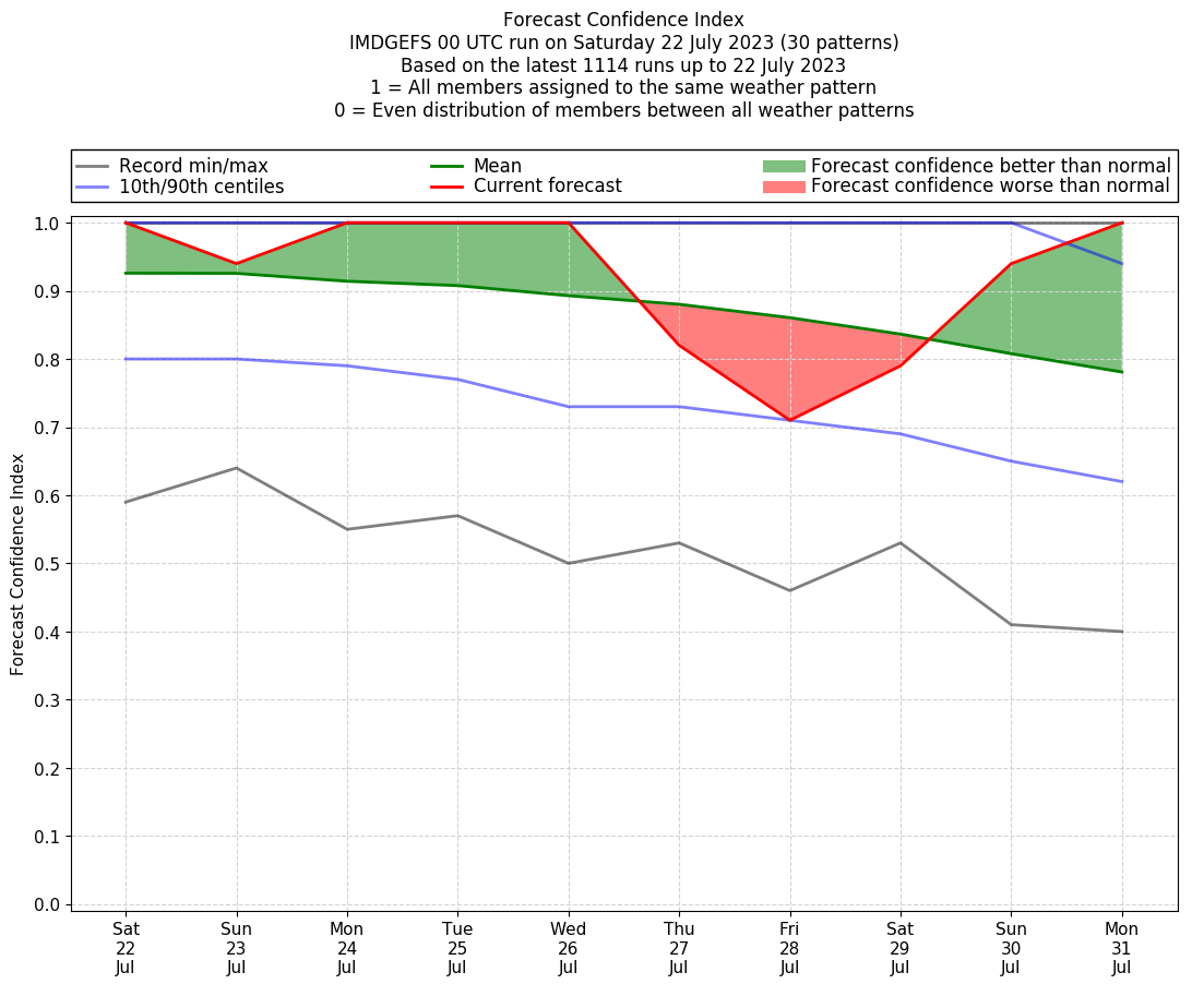 | Weather patterns typically associated with pre-monsoon tendencies over India are most likely Weather patterns 12, 13, 14, 15 and 22 (pre-monsoon) | |