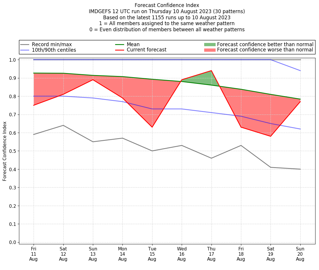 | Weather patterns typically associated with contrywide dry period tendencies over India are most likely Weather patterns 2, 3, 7, 8, 9, 16 and 20 (countrywide winter dry period) | |