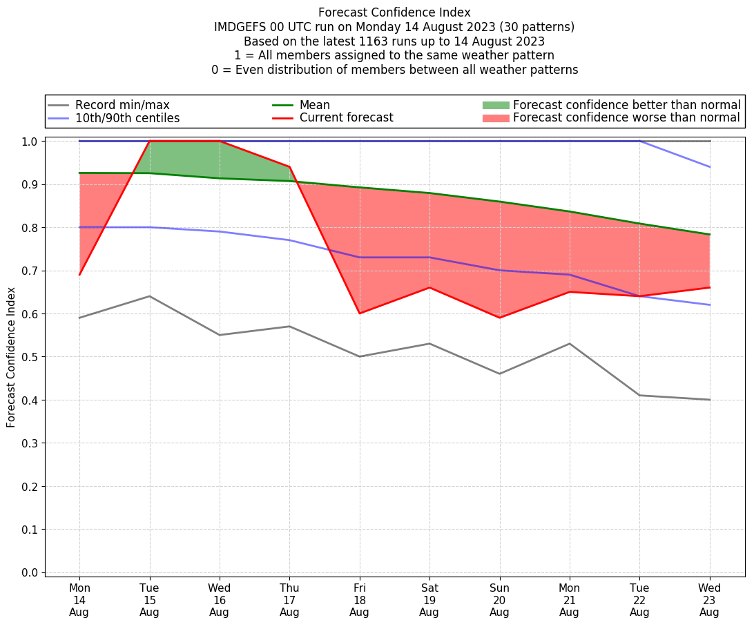 | Latest model run (14/00 UTC) | 100% | 100% | 100% | 100% | 95% | 90% | 95% | 100% | 100% | 100% |