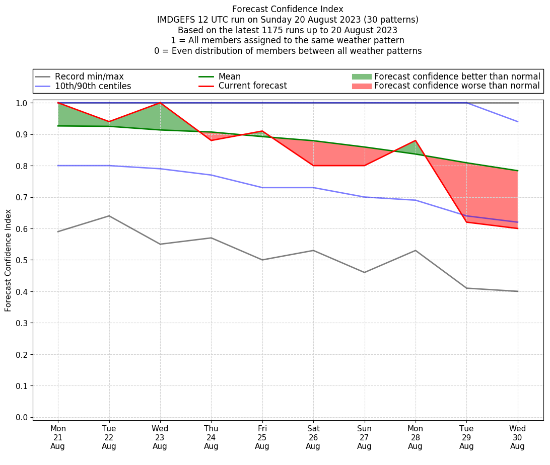 | Latest model run (20/12 UTC) | 100% | 100% | 100% | 86% | 90% | 62% | 57% | 86% | 67% | 43% |
