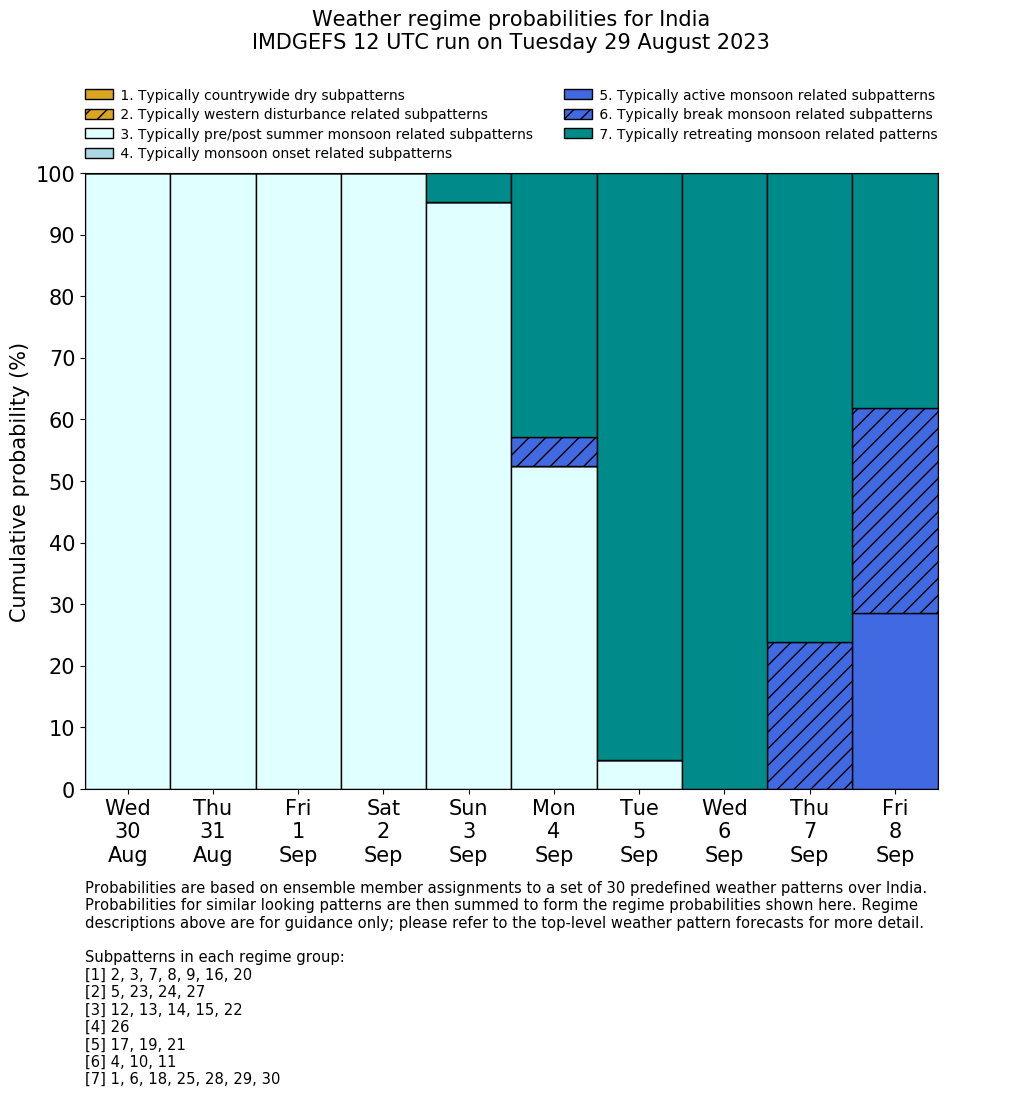 | Pattern 28 | 5% | 43% | 95% | 100% | 76% | 38% | Retreating Monsoon | 0.6% | 4.8% | 21.2% | ||||