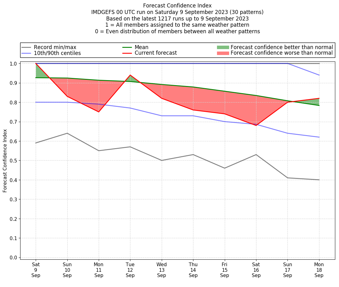 | Latest model run (9/00 UTC) | 100% | 90% | 67% | 95% | 90% | 86% | 90% | 62% | 52% | 71% |